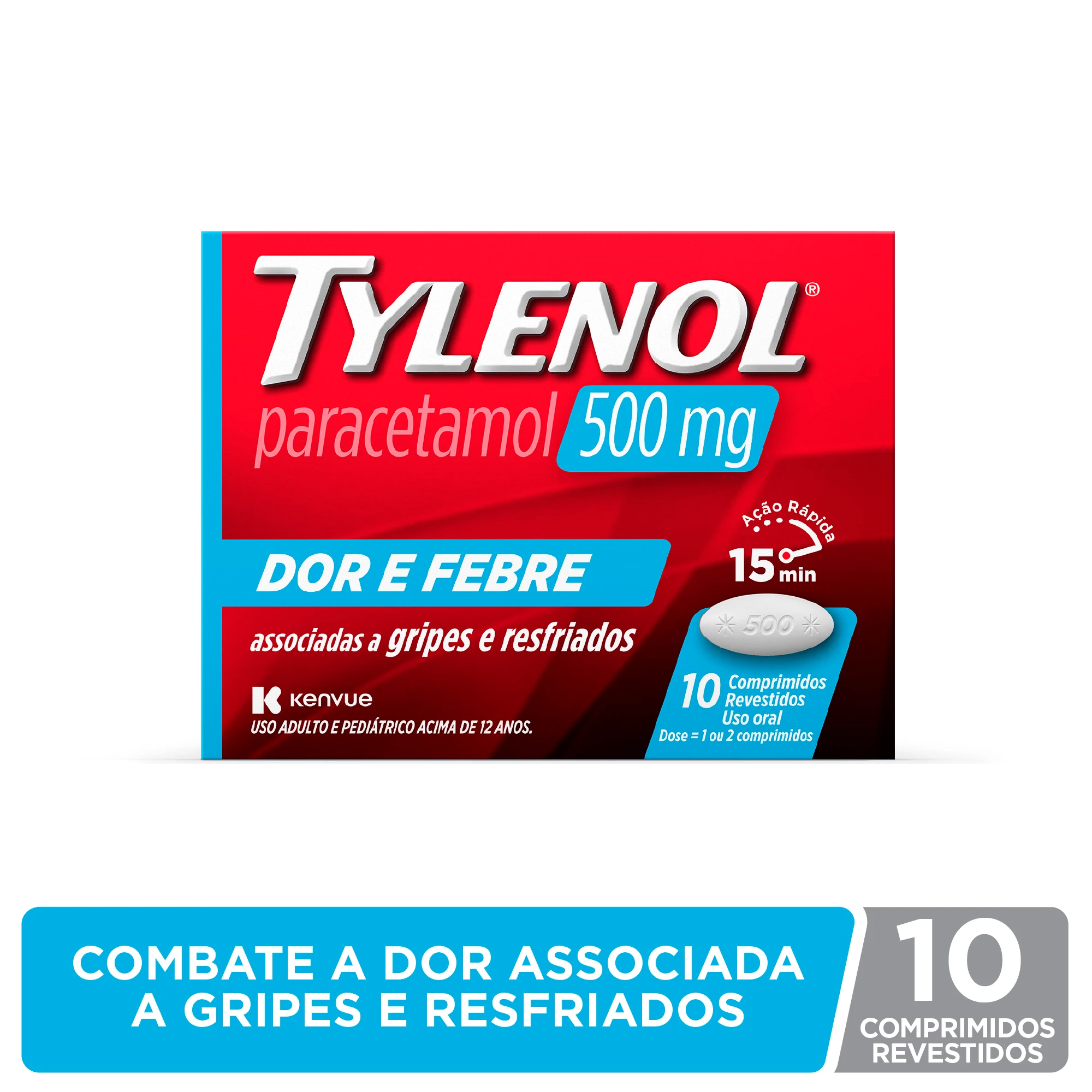 TYLENOL® para DOR E FEBRE é um analgésico e antitérmico com o princípio ativo paracetamol 500mg que promove o alívio de dores e febre associadas a Gripes e Resfriados ¹.